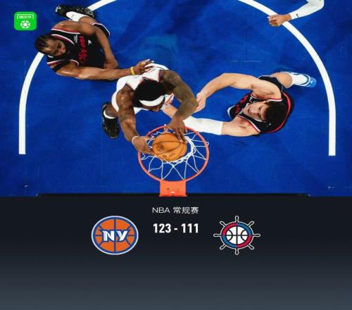 第四节尼克斯唐斯拿下10分,快船约翰-科林斯拿下9分,最终尼克斯123-111战胜快船