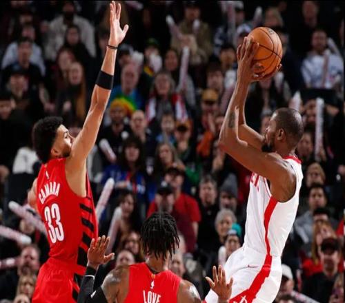拉锯战!火箭三分17中5落后3分:杜兰特12分3助,申京复出10分